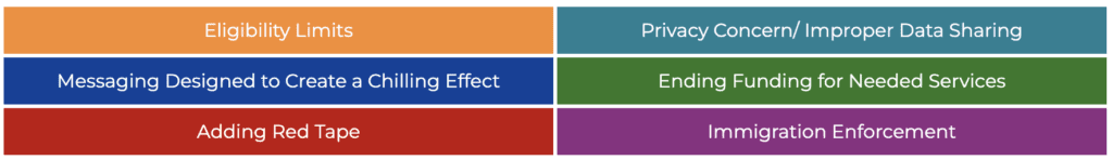 Since January 20, The Trump administration has taken an unprecedented number of actions that harm people in immigrant families. We designed this tracking tool to help PIF members keep track of the multiple policies and their status, as some of them do not take effect immediately and/or have been challenged in court. We are tracking policies in key federal government offices and agencies such as the White House and Office of Management and Budget, the Social Security Administration, U.S. Department of Health and Human Services, U.S. Department of Agriculture, U.S. Department of Housing and Urban Development, U.S. Department of the Treasury, and the U.S. Department of Homeland Security.